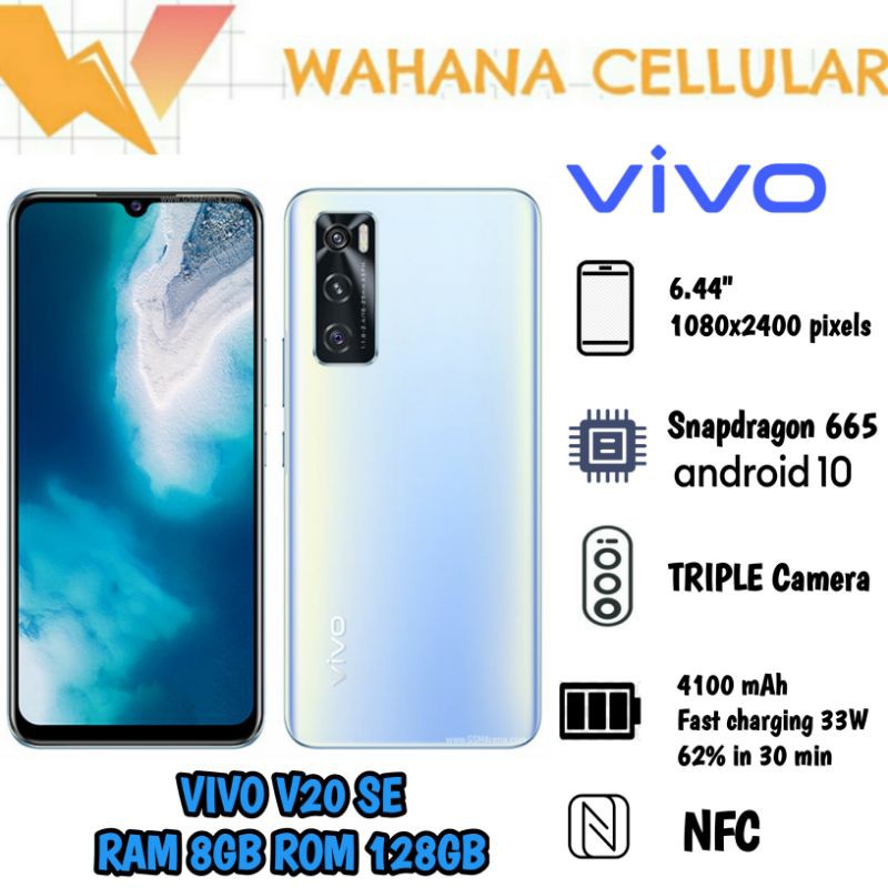 VIVO V20 SE RAM 8GB ROM 128GB VIVO V20Se 8128 GB GARANSI RESMIRp3299000. Li-po 4100 mAh fast charging 33W. Vivo mengklaim smartphone Vivo V20 dan Vivo V20 SE mengedepankan sejumlah fitur unggulan seperti resolusi depan kamera yang diklaim tertinggi di.